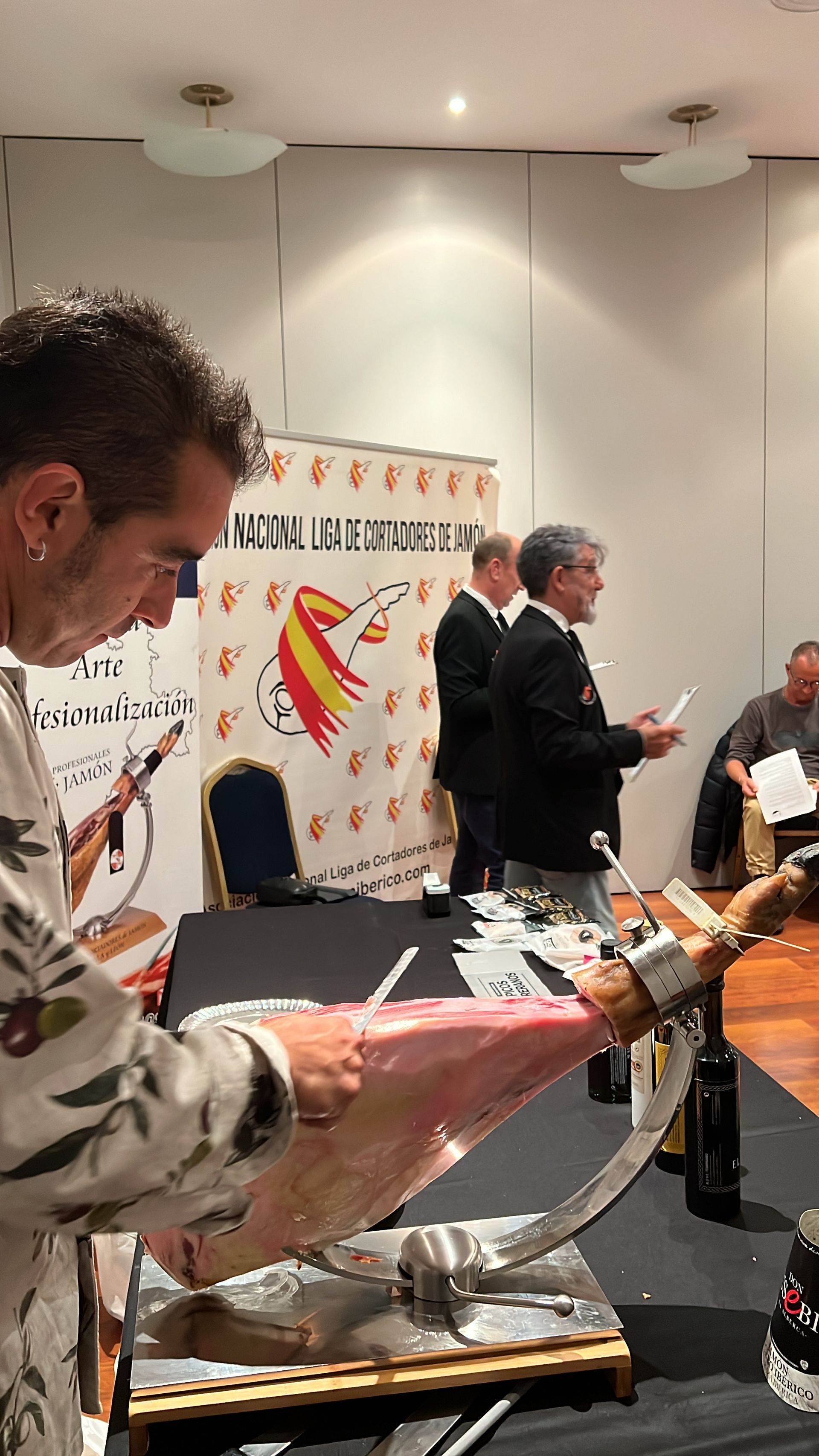 Yesterday, October 28, 2023, marked an exceptional day for ham and gastronomy lovers in Salamanca, Spain. In the heart of this historic city, an exciting ham cutting competition judging course was held, taught by two masters in the art of ham, Fernando Soto and Cristo Muñoz, along with the outstanding participation of the renowned ham cutter. ham, Ildefonso Poza Garrido. This experience was as interesting as it was exciting, offering participants an in-depth look at the tradition and refinement of ham cutting.